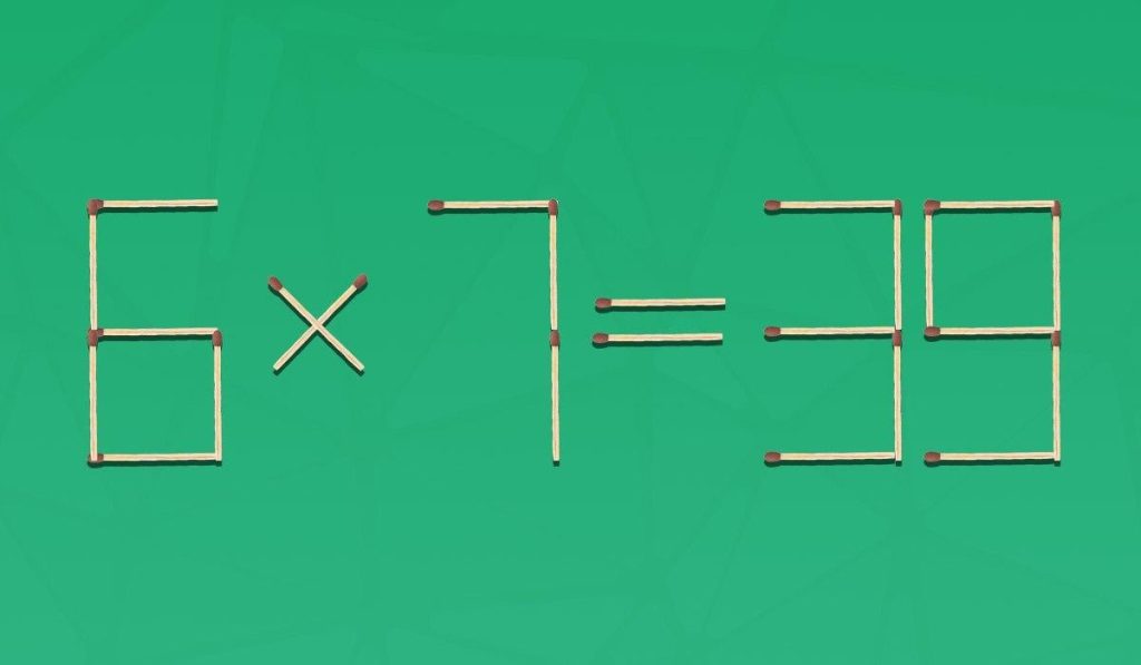 Před vámi – nesprávná matematická rovnice 6 × 7 = 39, složená z 24 zápalek. Podstatou úlohy je odstranit pouze dvě shody a změnit příklad na správný, ve kterém zůstane 22 shod.