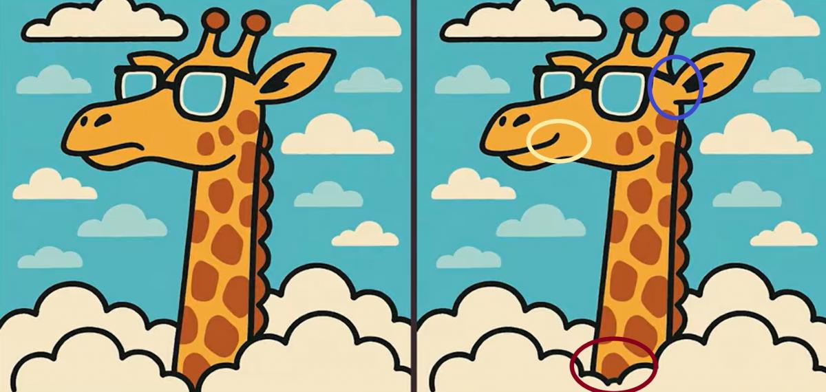 Tak co, jste připraveni na další výzvu? Podívejte se pozorně na dva obrázky žirafy v brýlích. Na první pohled mohou vypadat stejně, ale jsou mezi nimi tři malé rozdíly. Myslíte si, že je všechny najdete za 23 sekund? Zkuste to a otestujte svou ostrost zraku!