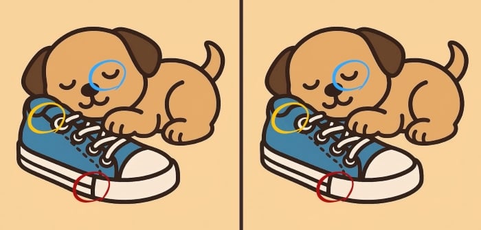 Tak co, jste připraveni na další výzvu? Podívejte se pozorně na dva obrázky štěněte spícího na botě. Na první pohled mohou vypadat stejně, ale jsou mezi nimi tři malé rozdíly. Myslíte, že je všechny najdete za 51 sekund? Zkuste to a otestujte svou ostrost zraku!